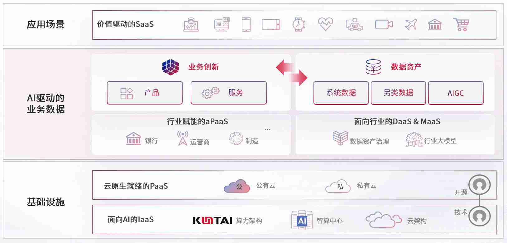 数字时代,,,,围绕企业数字化转型的关键要素,,,尊龙时凯数码开创性的提出数云融合战略和技术体系框架,,着力在云原生、、、数字原生、、、、AI原生和信创产业上架构产品和服务能力,,,,为处在不同数字化转型阶段的快消零售、、、、汽车、、金融、、、医疗、、、政企、、、教育、、、运营商等行业客户提供泛在的敏捷IT能力和融合的数据驱动能力,,,构建跨界融合创新的数字业务场景和新业务模式,,助力企业级客户建立面向未来的核心能力和竞争优势,,,全面推动社会的数字化、、、、智能化转型升级。。。
